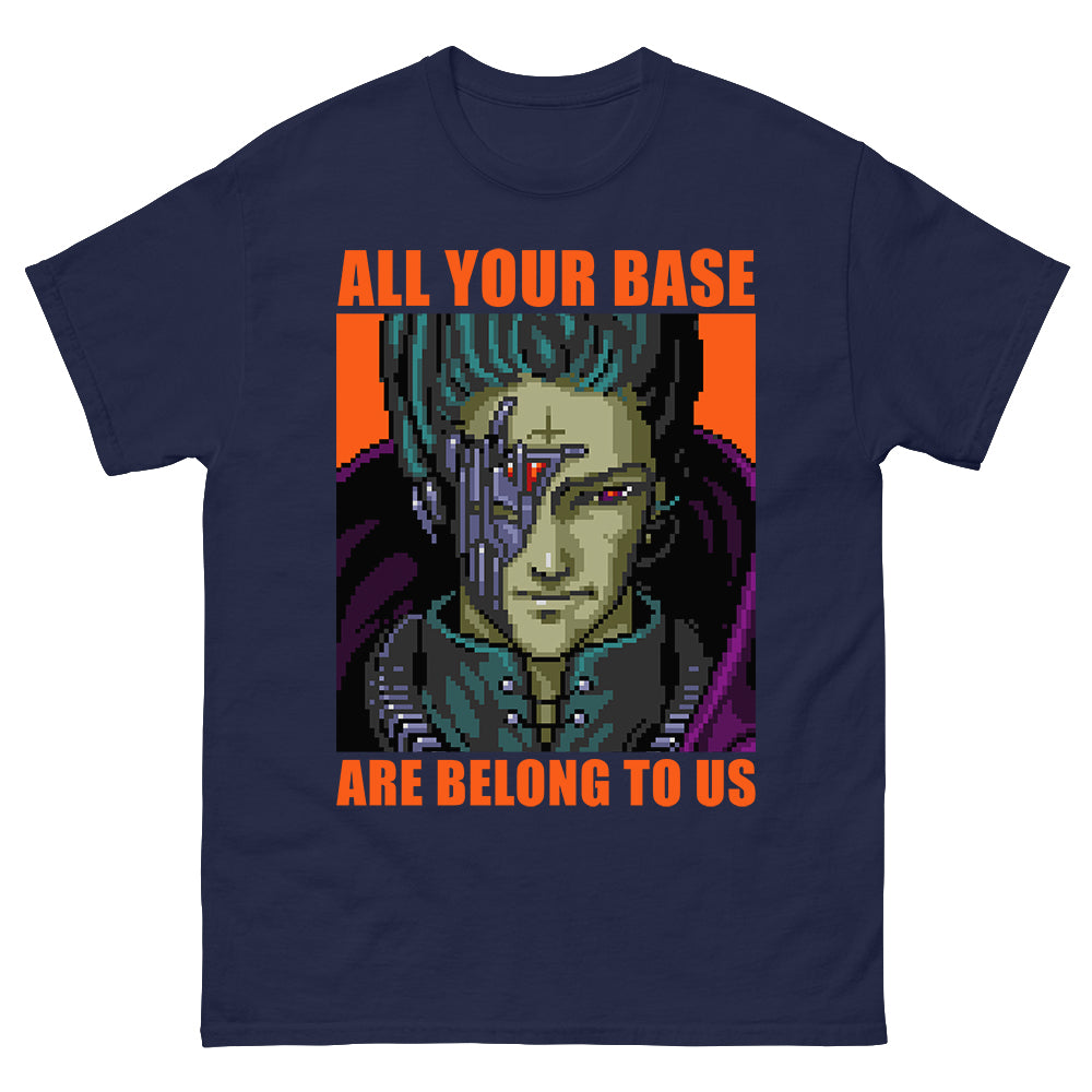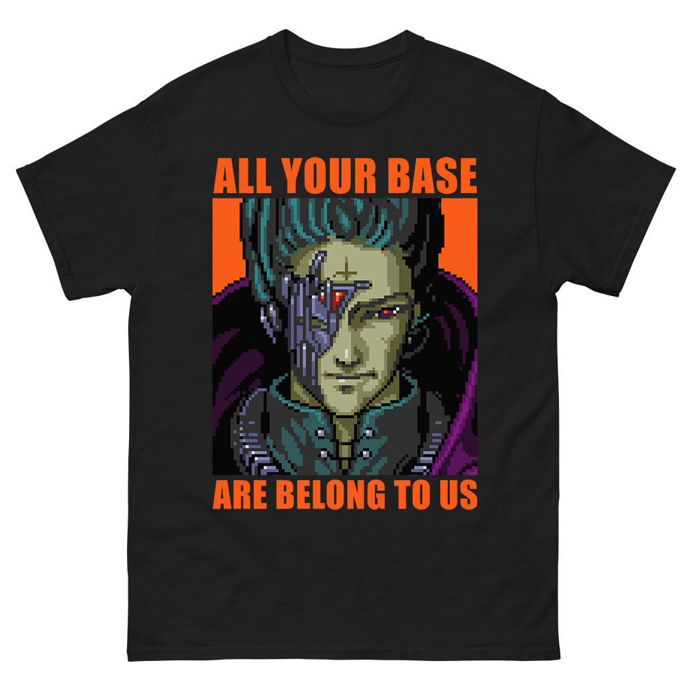 Zero Wing T-shirt featuring CATS and his infamous Engrish quote: "All your base are belong to us."