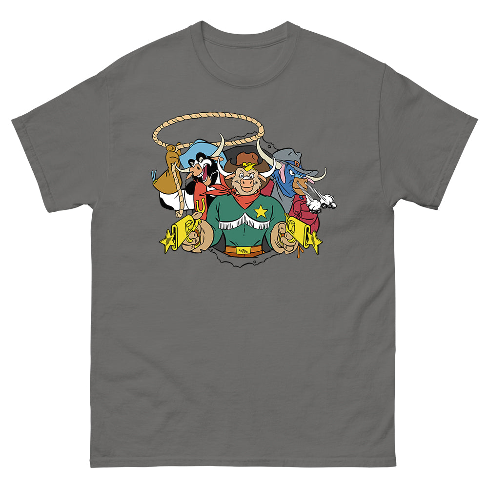 T-shirt with Marshal Moo Montana, The Dakota Dude, and Cowlorado Kid from Wild West C.O.W.-Boys of Moo Mesa.