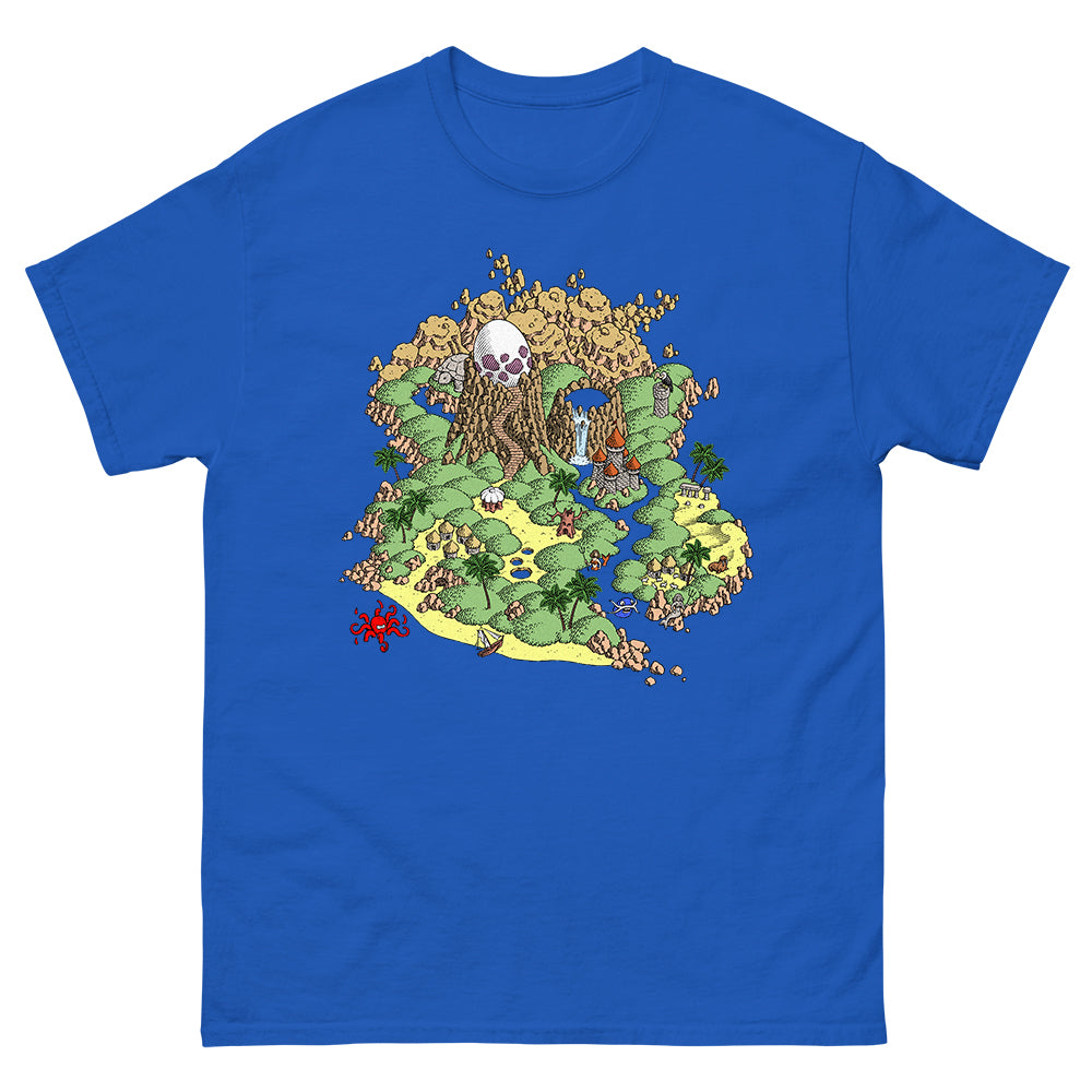 Ocean blue T-shirt with the map of Kohilint Island from The Legend of Zelda: Link's Awakening.