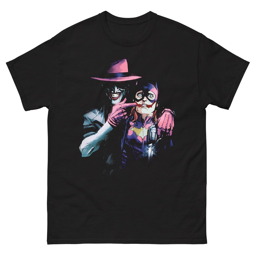 T-shirt with Batgirl no. 41's unpublished cover featuring the Joker and Batgirl. Original art by Rafael Albuquerque.